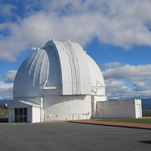 The main telescope at Mt Stromlo Observatory was a 74-inch (1.9-m) reflecting telescope. It was opened in 1955 and remained the largest in Australia until the Anglo-Australian telescope began operations in 1975. The telescope was housed in this dome but was unfortunately destroyed in the Stromlo fire of 2003. Photo Nick Lomb