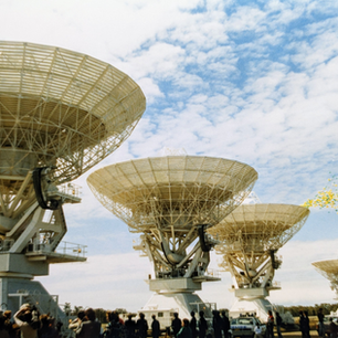 The opening of the Australia Telescope in September 1988. The core of the radio telescope is the Australia Telescope Compact Array (ATCA) at Narrabri, NSW. Four of ATCA’s six 22-m dishes are shown in the image. Photo Nick Lomb