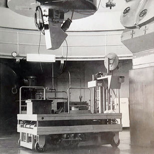 The Carnegie image-tube spectrograph at the Cassegrain focus of the Mount Stromlo 74-inch (1.9-m) reflector in 1968. Below is the lifting mechanism that allowed observers to operate instruments at that focus and track with the telescope. Photo Nick Lomb
